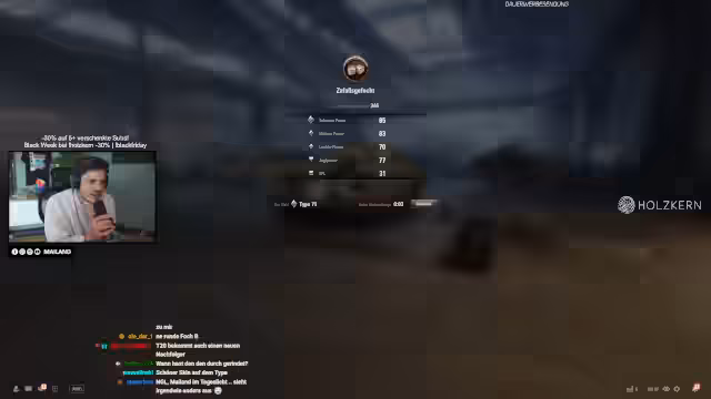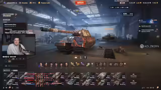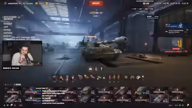 08:50:16Es finden sich kurze Hinweise zu technischen Spielmechaniken. So wird gefragt, ob sich die Geschwindigkeit von Raketen-TDs mit der Fahrgeschwindigkeit ändert. Zudem wird eine Panzerungsanalyse durchgeführt, bei der der Streamer Schwachstellen wie die Cupola des 279 Panzers als Geheimtipp für Penetrationschüße nennt. Außerdem erwähnt er eine stream-interne Veranstaltung, bei der der Panzer Bert als Lebkuchen-Panzer umgesetzt werden soll, was auf eine jährliche Tradition hinweist.