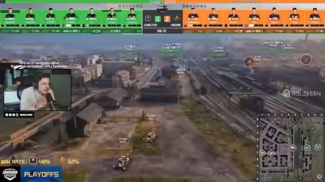 00:06:51Der Stream beginnt um 8 Uhr mit einem ungewöhnlichen Startzeitpunkt. Direkt nach der Begrüßung der Zuschauer wird der Fokus auf die laufende World of Tanks Weltmeisterschaft gelegt. Der Streamer blendet den Chat aus, um das Spielgeschehen besser sichtbar zu machen. Es handelt sich um das Loser Bracket, in dem nur noch europäische Teams im Rennen sind. Das europäische Team W trifft auf das chinesische Team 1-1, und der Streamer drückt seine Hoffnung aus, dass das europäische Team das Finale erreicht.