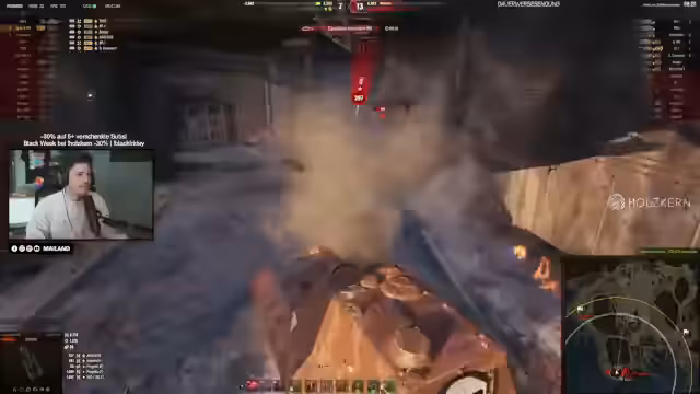06:34:50Mafia führt überraschend deutlich mit 4 zu 1 gegen das favorisierte Team Hit&Run auf deren Pickmap Himmelsdorf. Der Streamer analysiert, dass Hit&Run sichtlich demotiviert wirkt und nicht mit so einer Dominanz gerechnet hatte. Die Taktik von Mafia, den schwächsten Panzer (Typ 5) am Leben zu lassen und zu ignorieren, wird als sehr kluge Entscheidung dargestellt, da dieser am längsten zu töten ist und wenig Schaden anrichtet. Entscheidungen in Sekundenschnelle werden für den ausschlaggebenden Sieg verantwortlich gemacht.