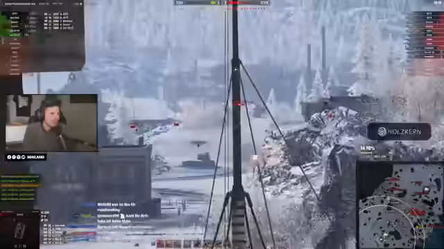 02:01:41Beim ersten Gefecht auf der neuen Map Klondike zeigt sich der Streamer begeistert. Er beschreibt die Map als größer als erwartet, besonders den Heavy-Bereich. Die TDs sind rückwärts gefahren und spawnen in der Mitte. Er kritisiert die Heavy-Ecke als stumpf mit vielen Containern, in denen jeder, der pusht, in Feuer gerät. Die Kameraführung in der Strebe wird erneut als problematisch erwähnt.