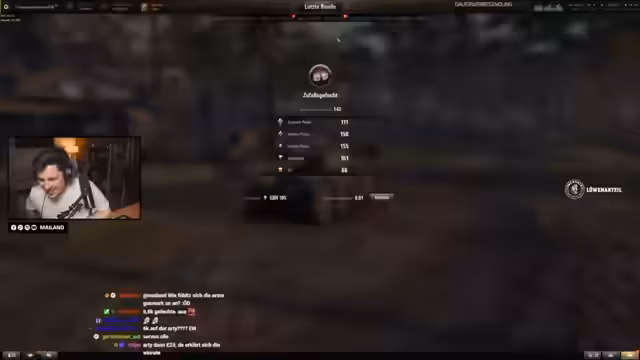 02:03:56Ein Spieler, der mitten auf dem Feld steht, wird als "mäuschen" bezeichnet, was dem Streamer viel Spaß bereitet, da ihn keiner der Gegner sieht. Dagegen steht die immense Frustration über das eigene Team, das passiv bleibt und keine taktischen Vorstänge unternimmt, sowie über den eigenen Tod durch einen unerwarteten Gegner.