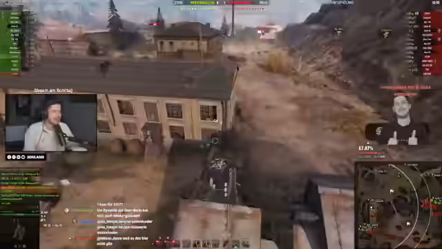 01:27:37Während des Spiels beobachtet der Streamer, dass sich sein Team strategisch ungeschickt verhält und wichtige Positionen nicht nutzt. Er analysiert den Panzer Su-130PM und stellt fest, dass dieser zwar exzellent ist, aber schwer zu meistern und von vielen Spielern nur zum狙击, also zum Hintenhalten, genutzt wird. Eine Runde endet trotz guter Leistung des Streamers mit einer Niederlage, da das Team seine Überlegenheit nicht in einen Sieg umsetzen kann. In einer anderen Runde gelingt es seinem Team jedoch, einen klaren Sieg zu erringen, und der Streamer wird mit hohen Schadenszahlen und Assists ausgezeichnet.