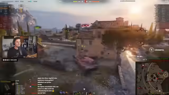 00:18:09Der Stream konzentriert sich auf den Versuch, den T30 auf 100% Gunmark zu bringen. Dabei wird ein überraschender 20%iger Rabatt auf den Kaufpreis des Panzers bemerkt, der wahrscheinlich mit einem vergangenen Winter-Event zusammenhängt. Die Runde ist sehr herausfordernd, da die Gegner stark sind und der Streamer Müße hat, den Panzer auszubauen.