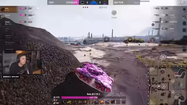 00:59:28Nach einer anfänglichen schwierigen Lage schafft es Cashback zu einem beeindruckenden Comeback, indem sie aus einer 3-Unterzahlsituation eine 6-3 Übermacht mit erheblichem Schadensvorteil drehen. Der leichte Panzer (Light) von Cashback liefert entscheidende Informationen und ermöglicht kontinuierlichen Druck, während Hit&Run keine leichten Panzer im Spiel haben. Diese Situation zwingt Hit&Run in eine passive Verteidigung, da sie kaum Mobilität für Gegenangriffe haben.