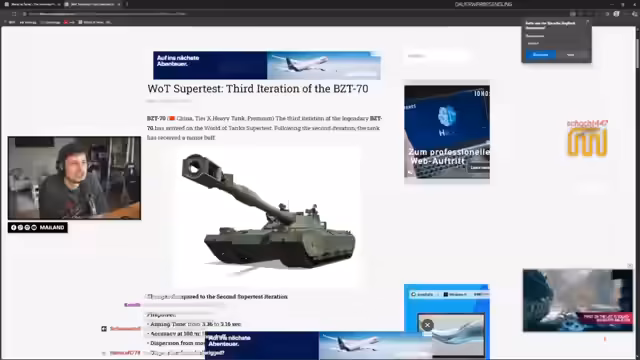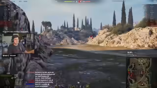 00:24:58Der Streamer wechselt zum Gameplay und spielt einen 60TP. Er spricht kurz die Erwartungen an den Premium-Gameplay-Tag an und stellt fest, dass es hitzig zugeht. Während eines Gefechts kritisiert er den Realismus in World of Tanks, indem er erwähnt, dass ein Panzer nach einem HE-Treffer, der mehrere Kilogramm TNT enthält, weiterfahren könne, und sich damit von Spielern abgrenzt, die mehr 'echten Kampf' fordern.