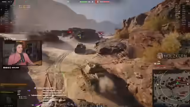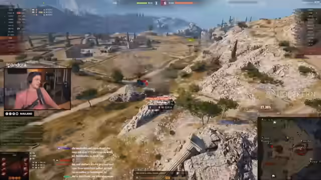 00:32:25Während des Gameplays wird der Panzer E4 im Detail analysiert. Es wird diskutiert, dass dieser Panzer auf Stadtkarten stark im Nahkampf ist, aber ansonsten Schwächen hat. Der Streamer bemängelt die Performance seines Teams, das oft in der Base bleibt und nicht aktiv am Kampf teilnimmt. Es wird kritisiert, dass manche Spieler, insbesondere in der MBT-Klasse, nach dem ersten Treffer sterben und keine Strategie verfolgen. Im Gegenzug wird auch eine gelungene Runde mit über 8.000 Schaden gefeiert.