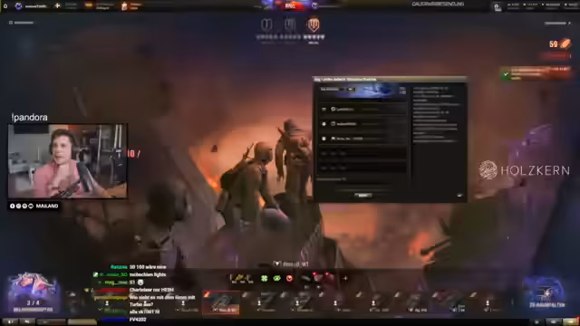 01:36:03Der Streamer und andere Streamer wie Chess und Lynx treffen sich für eine gemeinsame Runde im Pandora-Modus. Sie planen, als Team mit schweren Panzern zu spielen und werden versuchen, alle Gegner zu "wegrammen". Die Streamer stellen sich kurz vor, wobei Lynx angibt, Clean-Feed-Streams zu machen und viel Ansturm zu spielen. Sie starten die Runde mit dem Ziel, die Wellen im Team zu meistern.