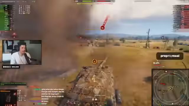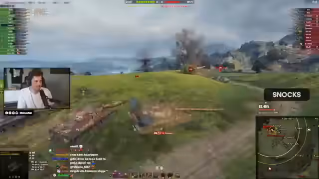 00:36:58Ein Gefecht beginnt, in dem der Streamer mit seinem Panzer offensiv agiert und versucht, gegnerische Fahrzeuge auszuschalten. Er beklagt sich mehrfach über das mangelhafte Teamplay seiner Mitspieler. Als er Hilfe anfordert, signalisieren diese zwar, dass sie kommen, fahren aber stattdessen weg, anstatt ihm tatsächlich beizustehen. Er kritisiert scharf, dass seine Mitspieler wertvolle Zeit ungenutzt verbringen, anstatt das Spiel aktiv zu gestalten, was zu einem überaus frustrierenden Verlauf führt.