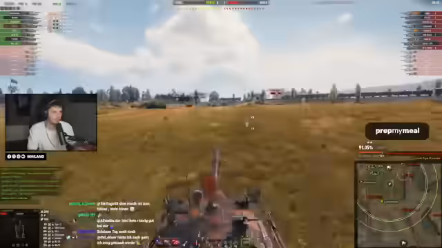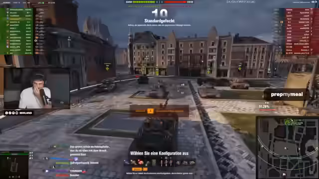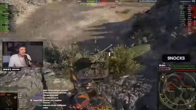 03:46:45Ein Gefecht beginnt, bei dem das Team des Streamers frühzeitig in die Defensive gedrängt wird. Der Gegner dominiert mit einem Zwilling, der massiv Schaden anrichtet. Das eigene Team agiert sehr passiv und hat kaum Kontrolle über die Karte. Der Streamer versucht, aktiv zu bleiben, stellt aber fest, dass das Schicksal des Gefechts bereits nach kurzer Zeit besiegelt ist, bedingt durch das erfolglose Zusammenspiel des Teams.