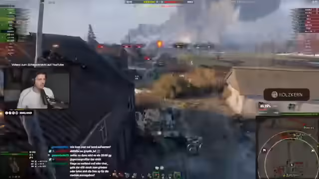 03:19:02Der Streamer analysiert das Gameplay mit dem Ares-Panzer, betont die Notwendigkeit, kurz zu pieken und sofort wieder in Deckung zu gehen. Er stellt fest, dass der Schaden von 550 bei diesem Fahrzeug in Ordnung ist. Es gibt eine technische Diskussion über die Alpha-Schadenswerte von HE-Munition und die Balance durch Wargaming, wobei der Streamer kritisiert, dass die HE-Munition trotz des Alpha-Buffs zu schwach geblieben ist und sich nicht mächtig anfühlt.