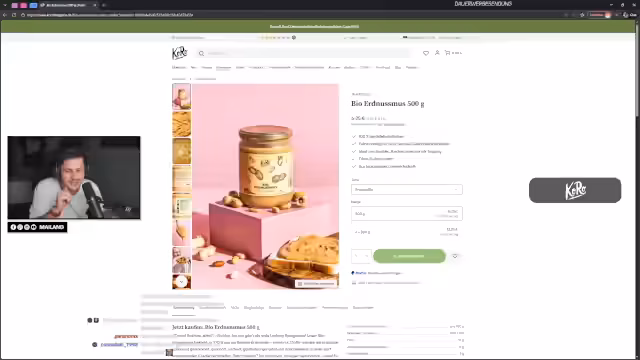 04:17:33Der Streamer wechselt zu persönlichen Themen und erwähnt ein Geschenk für seine Partnerin Vanessa. Er präsentiert Produkte von Koro, einem Online-Shop für gesunde Ernährung, und empfiehlt speziell Erdnussmus, Proteinriegel und gefriergetrocknete Früchte. Er wirbt für eine Zusammenarbeit, bei der der Chat ein Produkt für Vanessa auswählen soll und verspricht, dies im Stream weiterzuverfolgen.
