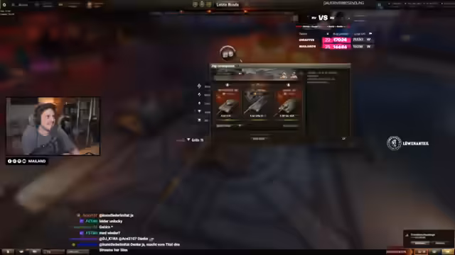 02:53:19Nach mehreren unbefriedigenden Runden, insbesondere mit dem TVP, wird die Fahrzeugwahl kritisch hinterfragt. Der Streamer erwägt den Wechsel zu anderen Panzern wie einer Karo oder einem E4, um die Performance zu verbessern. Es kommt zu technischen Abstimmungen mit dem Platoon-Partner und eine kurze Pause wird angekündigt. Nach der Pause wird das Ziel definiert, mehrere Spiele in kurzer Zeit zu spielen, um den Rückstand aufzuarbeiten und wieder in die Spur zu kommen.