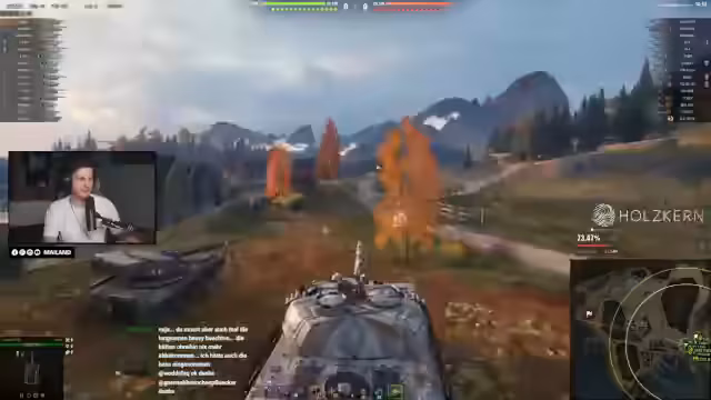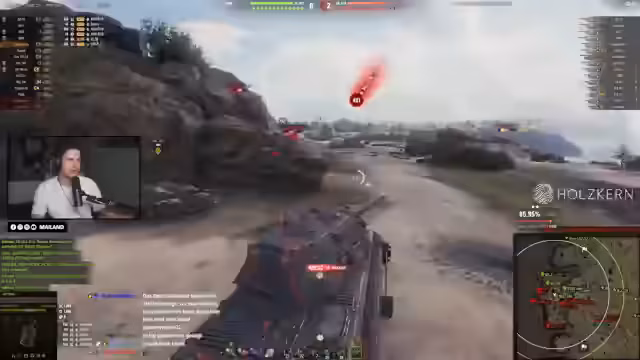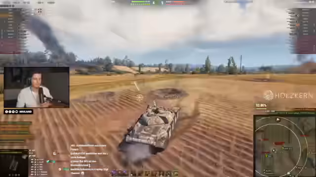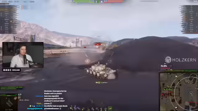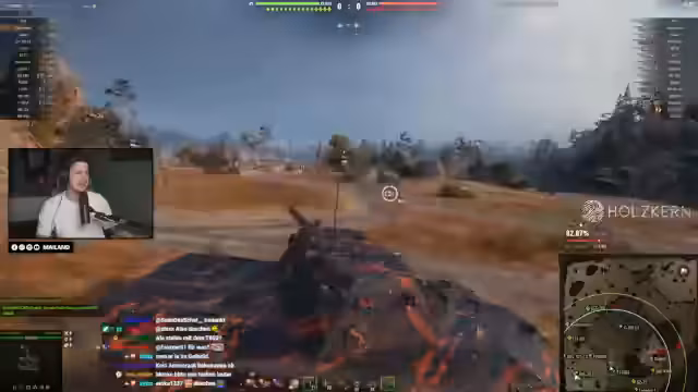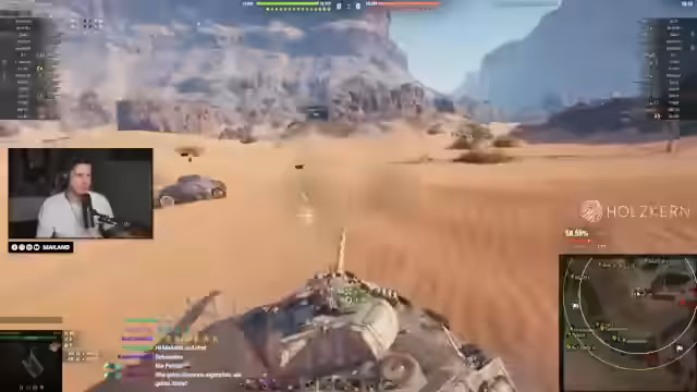 04:30:30Ein intensives Gefecht entbrennt, in dem der Streamer einen riskanten Manöver vollführt und dabei einen Gegner rammt. Die Aktion zeigt die Wetteinsätze im Spiel, bei denen man hohe Schadenszahlen anpeilt, aber auch schnell eliminieren kann. Es wird die Frustration über das gegnerische Team und die ungünstige Spielsituation deutlich, während gleichzeitig technische Probleme mit dem Tastatur-Layout des Panzers besprochen werden.