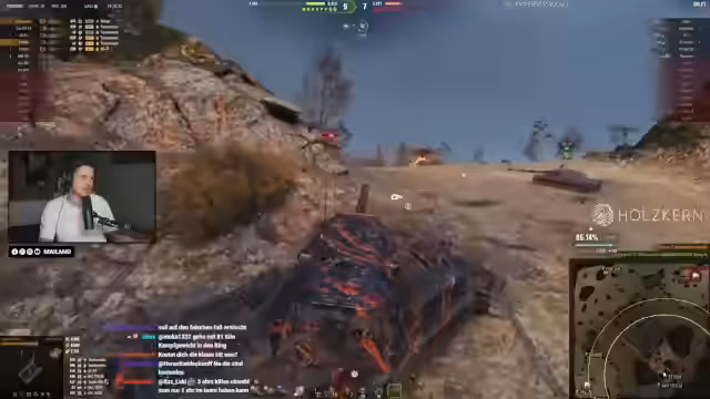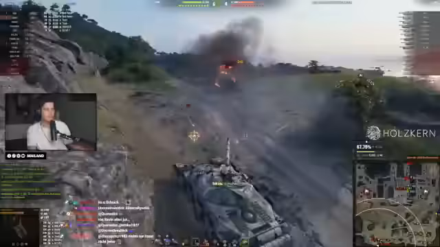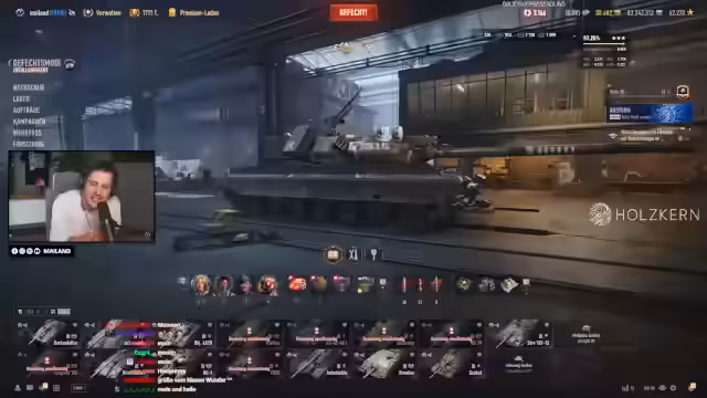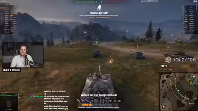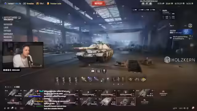 00:10:57Nach der Planung beginnt das aktive Gameplay mit dem Chantal-Tank. Der Streamer beschreibt, wie er den fast komplett stockierten Tank ausrüstet und erste Kämpfe fährt. Er lobt den leistungsstarken Turbinensound und die Beschleunigung des Fahrzeugs, bemerkt aber auch Schwächen in der Grundausstattung. Während der Gefechte wird die Dynamik und der Spaß am Spielen hervorgehoben, obwohl noch einige Upgrades fehlen. Es folgen detaillierte Überlegungen zu möglichen Verbesserungen wie Feuerkraft und Mobilität.