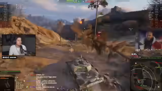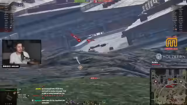 05:10:10Ein erneut intensives Gefecht zeigt den Streamer in der Offensive, der mit seiner Taschenratte einen Gegner rammt. Gleichzeitig herrscht großer Unmut über das Verhalten seiner Teamkameraden. Er wirft ihnen vor, sinnlos im offenen Feld zu stehen und keine Ziele zu beschießen, anstatt strategisch zu decken oder zu flankieren. Diese passive Spielweise führt dazu, dass das Team früh unter Druck gerät.