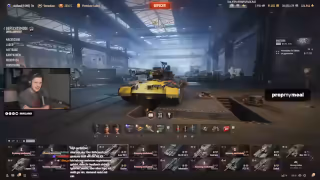 00:11:33Der Streamer beginnt den Mittwochnachmittag mit einem freundlichen Gruß an die Zuschauer. Er begrüßt die Chatnamen wie Jay, Mantuke und Mega und äußert seine Vorfreude auf das anstehende Gameplay. Er erwähnt, dass der Vortag mit den Teams BZT und STK erfolgreich verlaufen ist und in Erwägung zieht, entweder an diese anzuknüpfen oder den ASEXA zu fahren. Der Fokus liegt auf dem Erreichen von 4.000 Schaden pro Gefecht (DPG) mit dem E65-Zwilling, dessen Gunmark aktuell bei 63 Prozent liegt.
