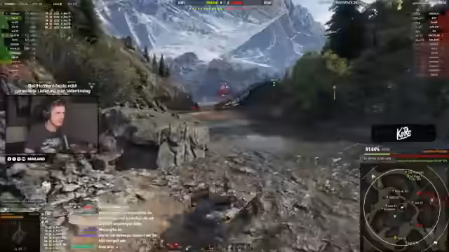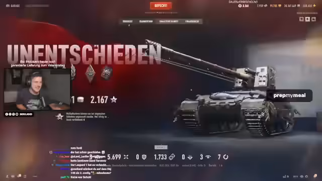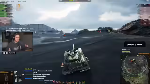 03:01:40Eine zentrale Aussage ist die Kritik am Panzer Ares. Der Streamer findet den Panzer 'illegal stark', da er auf Stufe 8 nichts verloren habe. Er listet dessen starke Punkte auf: exzellente Turmpanzerung, hohes Alpha-Schaden und schneller Ladezeiten. Es wird eine Diskussion über die Gunmarks und die teure '93-Prozent-Hürde' angestoßen, humorvoll als Knopf in der WG-Zentrale dargestellt. Der E-65 wird hingegen als fairer und spaßiger Panzer im Vergleich zum Ares beschrieben, bei dem man seinen Damage durch die dritte Gunmark fast verdreifachen kann.