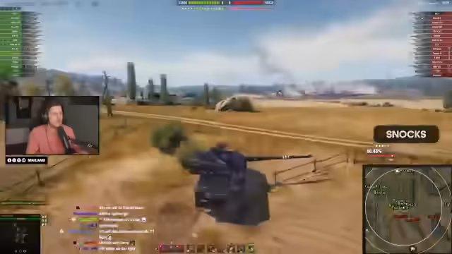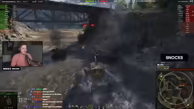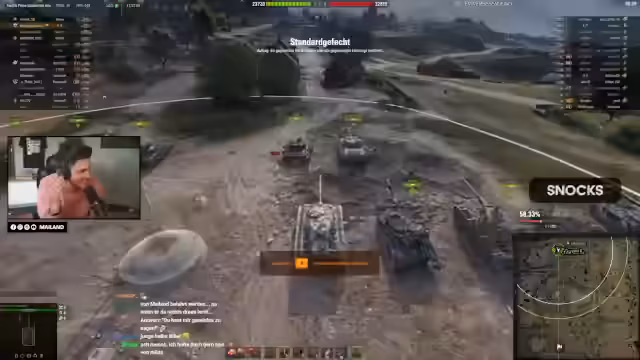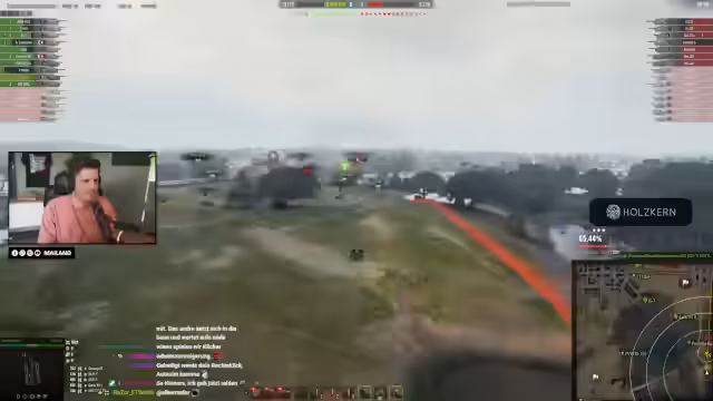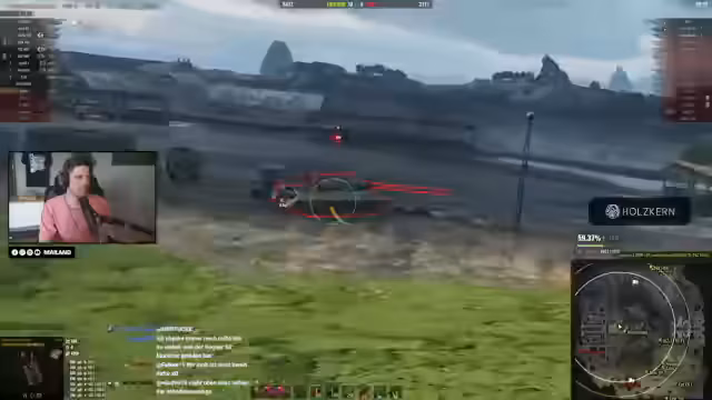 04:22:50Ein technisches Problem bei Radpanzern wird angesprochen, bei denen das 'Rubberbending' – ein Ruckeln bei der Bewegung – beobachtet wird. Es wird vermutet, dass dies an der Fahrphysik liegt. In einem Gefecht wird ein Gegner, der sich im Gebüsch versteckt, nicht korrekt geortet. Die Chatkommunikation mit dem Team gestaltet sich schwierig, da der Streamer die Position eines Gegners nicht genau zuordnen kann und die Teamkameraden nicht kooperieren.