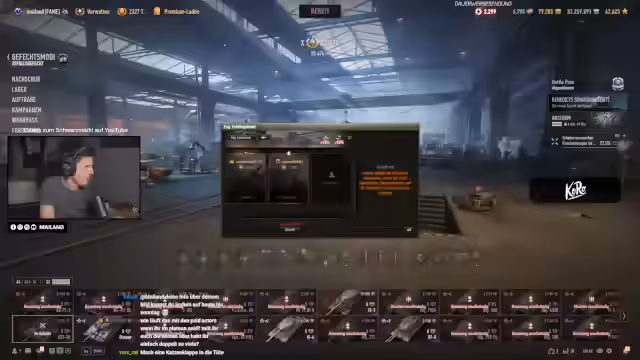 00:02:36Der Stream beginnt mit einer Begrüßung des Chats und technischen Schwierigkeiten beim Start von World of Tanks. Der Streamer kündigt ein Wednesday M&M-Format im Stil der "guten alten Zeiten" an und thematisiert direkt den bevorstehenden Verkaufsstart des EBR 75 auf dem Schwarzmarkt. Er spekuliert über den Preis, der bei 15.000 Gold liegen soll, und äußert seine Skepsis, ob der Panzer, den er als "dummen Jodel-Tank" bezeichnet, noch den Status eines besonderen Fahrzeugs besitzt. Er erwähnt die Konkurrenz, die der EBR für andere Light-Tanks und TDs im Matchmaking darstellt.