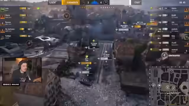05:11:56Der Verlauf der Runden zeigt taktische Fehlkalkulationen, die den Spielverlauf beeinflussen. Liberty von Cashback macht einen Rookie-Fehler, indem er zu lange offen bleibt, was W drei Panzer kostet. Baby von W zeichnet sich durch kluge Positionierung und Timing aus und entgeht geschickt gefährlichen Situationen, was ihm hohe Schadenswerte einbringt.