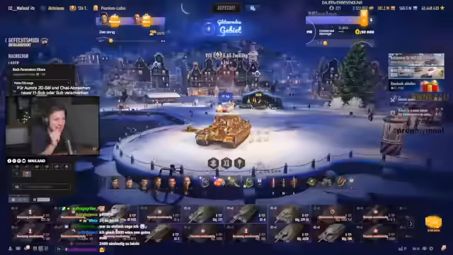 01:37:52Als Belohnung für das Erreichen eines Sub-Ziels wird ein Sonderstream angekündigt: Der 'Lebkuchenpanzer-Bugstream'. Dieser ist zwischen Weihnachten und Silvester geplant. Der genaue Termin ist noch nicht festgelegt, aber der Stream wird als zusätzliche Weihnachtsaktivität beworben. Es handelt sich um eine Community-Aktion, die im Anschluss an das reguläre Spielgeschehen besprochen wird.