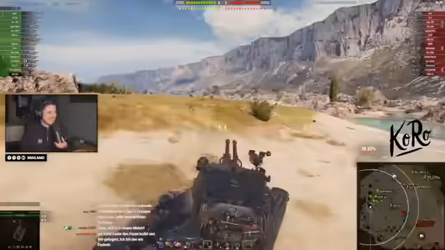 03:22:48Ein Gefecht wird beschrieben, in dem der Streamer versucht, einen Gegner zu bekämpfen, aber durch ungeduldiges Verhalten des Gegners, der zu früh schießt, eine gute Chance verpasst. Es werden verschiedene Panzer, wie ein Defender mit einer guten Runde, erwähnt. Der Streamer kritisiert eine riskante Spielweise und die unvorteilhafte Map, die nur für Lights und mobiles Spaß macht.