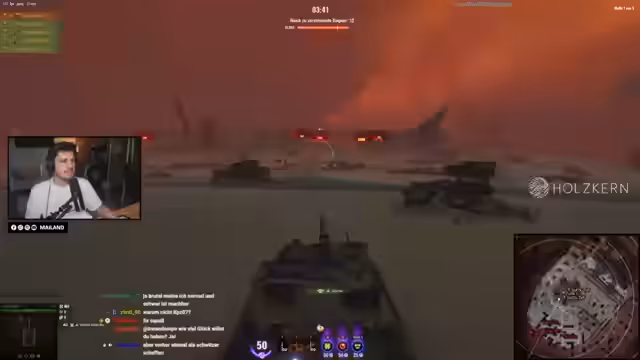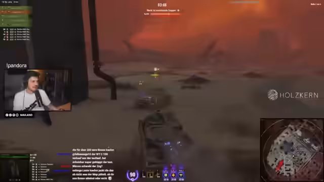 04:52:32Es folgt intensives Gameplay im Pandora Event. Das Gegnerteam ist mit mehreren neuen Panzern wie dem MBT und Chieftain ausgestattet. Der Streamer analysiert das Spielgeschehen, kritisiert die Ladezeiten und Soundprobleme und beobachtet, wie die Gegner agieren. Er erwähnt die Strategie, Lootbox-Panzer zu fokussieren und zeigt sich vom Gameplay und den Reaktionen im Chat beeindruckt, auch wenn er am Ende einer Runde als ärmste Sau beschimpft wird.
