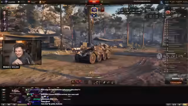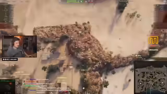 04:48:58Die Runde beginnt mit der Feststellung, dass das Matchmaking problematisch ist. Das Waffentrager-Platoon des Streamers stößt auf stark abprallende Gegner, was zu einer schwierigen Situation führt. Es wird kritisiert, dass auf dem Papier bessere Spieler in einem 260er Platoon eine schlechte Leistung zeigen und dass Statistiken nicht alles über das Spielverhalten aussagen. Das Setup des Spiels mit fünf TDs und drei Artillerien wird als experimentell eingestuft, wobei die Rollenverteilung als passend angesehen wird.