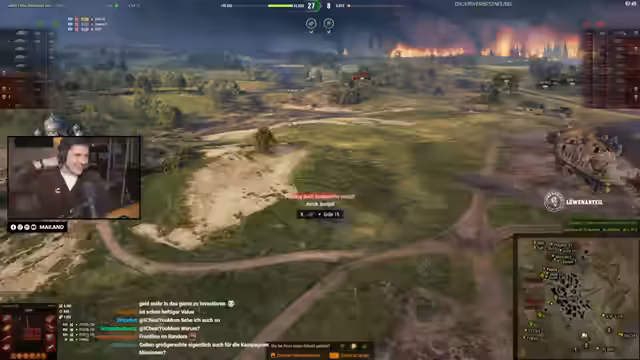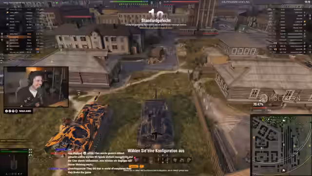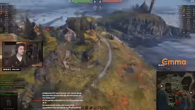 01:13:47Es wird über verschiedene Panzer-Matchups und deren Auswirkungen auf das Spielgeschehen gesprochen. Der Streamer äußert sich über die Vorstellung, in einem IMX Tier 9 von drei Waffenträgern entdeckt zu werden. Es wird die Frage aufgeworfen, ob Grand Battles aktiviert werden sollen, und kurz darauf wird festgestellt, dass dies bereits geschehen ist. Überraschung herrscht, dass bisher keine Grand Battle zustande gekommen ist. Der Streamer kommentiert die Spielweise anderer Panzerfahrer, insbesondere die Wahl ungewöhnlicher Panzer oder Artillerie durch "Miland". Es wird über die besten Platoon-Zusammenstellungen in World of Tanks gescherzt und die Frage aufgeworfen, was "Hausmeister" bedeutet, was zu einer Erklärung des Begriffs führt. Im weiteren Verlauf des Spiels werden Gegner entdeckt und ausgeschaltet, wobei der Streamer gelbe Schadenszahlen auf seinem Bildschirm sieht und die Hilflosigkeit eines IS7 kommentiert. Das Team eliminiert schnell mehrere Gegner und der Streamer kündigt an, während des Nachladens Aufklärungsarbeit zu leisten.