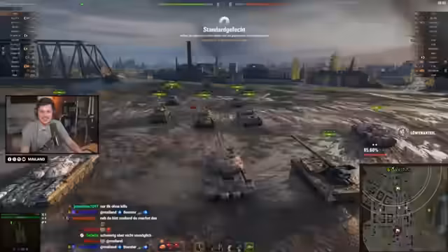 01:25:06Zu Beginn des Streams erlebt der Streamer einen unglücklichen Start in einem Gefecht. Sein Panzer wird überraschend aus dem Hinterhalt beschossen, was zu sofortigem HP-Verlust und letztlich seinem Tod führt. Anschließend nutzt er den Progetto, um zu einem Artillerie-Punkt zu stoßen, doch sein Vorhaben scheitert, da das Team nicht zügig genug nachrückt und der Gegner keine Druckausübung ermöglicht.