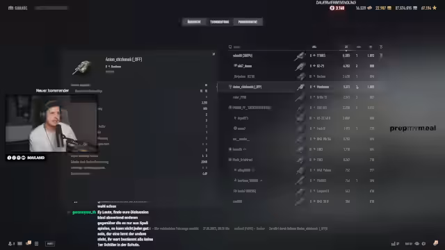 04:19:44Zu Beginn des Streams wird über den Verlust einer Lieblingsmap gesprochen, da der Community-Fokus zu sehr auf Jodeln verlagert sei. Die Entscheidung fällt auf einen Ansitzer anstelle einer optischen Ausstattung, um auf der ausgewählten Karte eine bessere Performance zu erzielen. Das Team verteilt sich mit zwei leichten Panzern, wobei die gegnerische Formation als ausgeglichen eingestuft wird, subjektiv aber als schlecht empfunden wird. Ein besorgniserregender Gegner ist der Borkenkäfer des Gegners, dessen Position und Rolle strategisch bedeutsam erscheint.