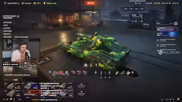 00:08:54Der Stream beginnt mit einem entspannten Wochenstart. Nach einer kurzen Pause begrüßt der Kanal die Zuschauer. Themen der Eröffnungsminuten sind die Zeitumstellung und die damit verbundenen veränderten Tageslichtverhältnisse. Eine leichte kritische Anmerkung zum Gameplay im World of Tanks, speziell im Bezug auf die bevorstehende Weihnachtszeit, wird ausgesprochen, indem angedeutet wird, dass die Leistung im Moment nicht ideal ist. Eine Reihe von Spitzernamen wird im Kontext des Spiels angesprochen.