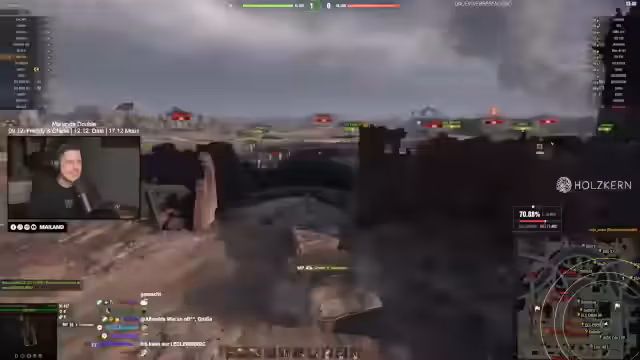00:29:48Der Stream wechselt zum eigentlichen Gameplay. Er kritisiert, dass sein Tier-7-Panzer gegen höhere Stufen antreten muss und die aktuelle Meta für diesen Tier als schwierig ansieht. Es folgen intensive Gefechte, bei denen er strategische Entscheidungen trifft, Positionen einnimmt und mit seinem Panzer, einem Leo, sehr guten Schaden erzielt. Währenddessen gibt es eine Debatte im Chat über die Stärke des Premium-TDs 'Vipera', wobei der Streamer zu dem Schluss kommt, dass dieser auch nach einem Buff noch sehr stark in der Meta ist.
