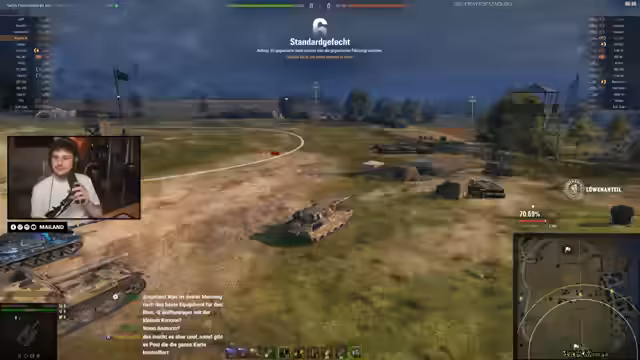 01:40:04Zu Beginn des Abschnitts werden verschiedene Spielmechaniken und Tanks diskutiert, darunter experimentelle Aim-Systeme und die Bewertung von Skins. Der Streamer kritisiert den 4th of July Skin als besonders speziell, bevor er zu 9000 Schaden pro Runde übergeht. Er greft Zuschauer wie Gershardt an, der seine monatlichen Gebühren finanziert, und erwähnt technische Aspekte des Spiels, wie die Positionierung verschiedener Panzer.