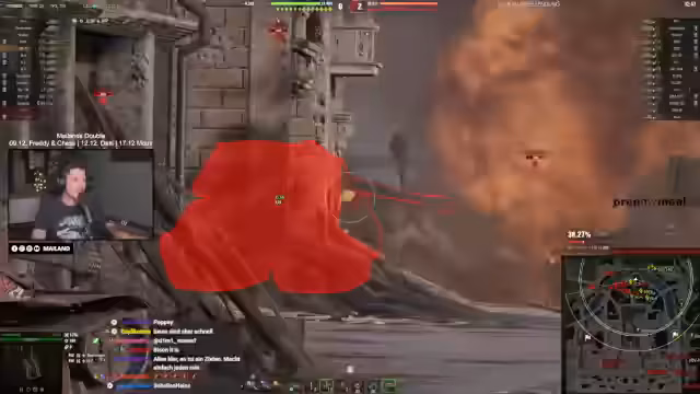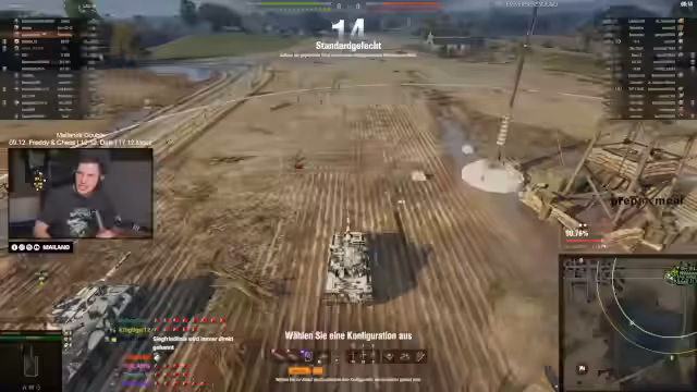 02:52:32Der Streamer übt Kritik an der Inkonsistenz von durchschießbaren oder umfahrbaren Objekten wie Zäunen und Regenrinnen auf verschiedenen Karten (z.B. Ensk), was insbesondere neue Spieler verwirren könne. Gleichzeitig stellt er ein neues Feature vor: den 'Stat-Tracker', einen 3D-Aufsatz auf Panzern, der wie ein kleines Nummernschild aussieht und kaum auffällt. Dieser Tracker soll im Spiel aktualisiert werden und dient der visuellen Darstellung von Statistiken, wobei der Streamer dessen genaue Funktionsweise im Spielablauf noch testen möchte.