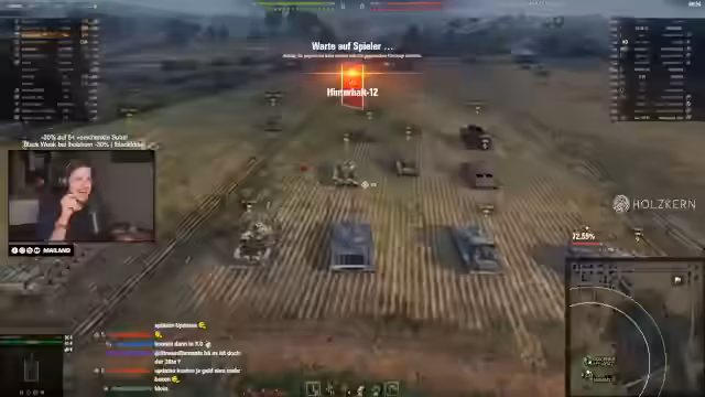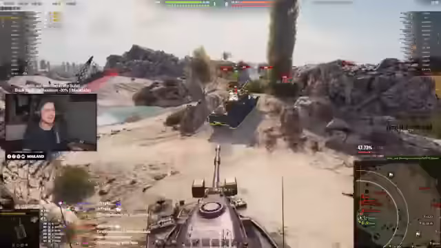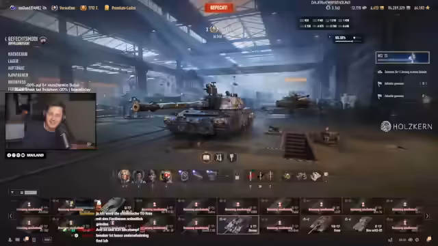 00:30:34Im Stream wird ein Teaser aus dem Holiday Ops Video diskutiert, in dem ein AMX 13 105 als Geschenk überreicht wird. Es wird spekuliert, ob dies ein Hinweis auf eine Belohnung oder einen zukünftigen Panzer ist, der einen Nachfolger auf Tier-11 erhalten könnte. Mailand widmet sich anschließend dem Gameplay mit dem Dravitz und dem Kust, wobei er seine Strategien und Schüsse kommentiert. Er kritisiert das Teamplay in einigen Runden und äußert sich frustriert über die mangelnde Deckungssuche einiger Spieler. Des Weiteren wird die Karte Lakeville und deren Ungleichgewicht im Valley-Bereich thematisiert, wobei Mailand eine Winrate von 60-40 oder höher für das nördliche Team vermutet und ein Rebalancing fordert. Auch der Murat wird gespielt und seine Kanone als solide bewertet, obwohl das Scandaling nicht optimal ist.