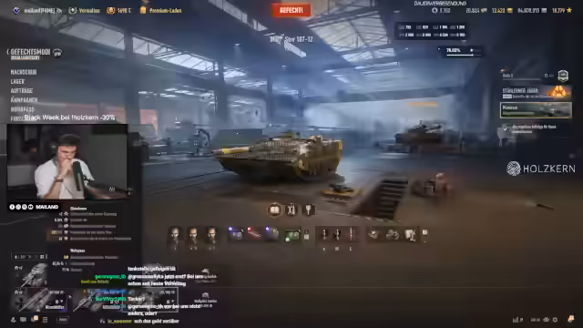 00:12:19Es wurde das WCI-Finale am 29. und 30. November angekündigt, das von 6 Uhr morgens bis in den Nachmittag gestreamt und kommentiert wird. Dies stellt ein großes Event für die Community dar. Im Anschluss wurde der Blackrock Panzer thematisiert, wobei seine Stärke als ultimative Krönung der neuen Panzer hervorgehoben wurde. Es gab eine Diskussion über das Aussehen des Panzers, insbesondere die Scheinwerfer, die als lächerlich empfunden wurden, obwohl der Tank von der Seite und hinten brutal aussieht. Die Panzerung des Blackrock wurde als nicht besonders gut bewertet, da er an vielen Stellen durchschossen werden kann. Trotzdem wurde der Wunsch geäußert, den Blackrock weiterzuspielen und ein Ziel von 6600 Schaden für die dritte Markierung zu erreichen. Ein neuer Skin für den DCT 159 Drachenseele wurde ebenfalls vorgestellt, der zwar an League of Legends erinnert, aber optisch ansprechend ist.