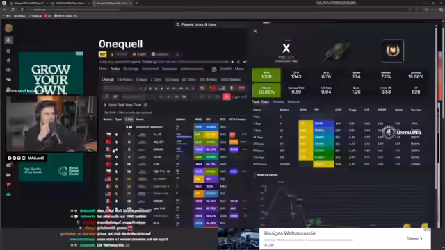 02:08:59Der Streamer analysiert detailliert die Statistiken eines Spielers mit dem Panzer 279. Dabei fällt ihm eine ungewöhnliche Entwicklung auf: eine Winrate von 38% bei 4.200 DPG, die sich später auf 90% bei 5.380 DPG verbessert. Er vermutet mögliche Manipulationen wie Boosting-Services oder unfaire Platoon-Taktiken, bei denen Mitspieler den Schaden blocken, um bessere Werte zu erzielen. Die auffällige Statistikentwicklung wirft Fragen nach der Korrektheit der Spielweise auf.