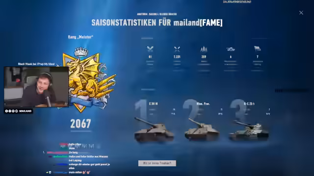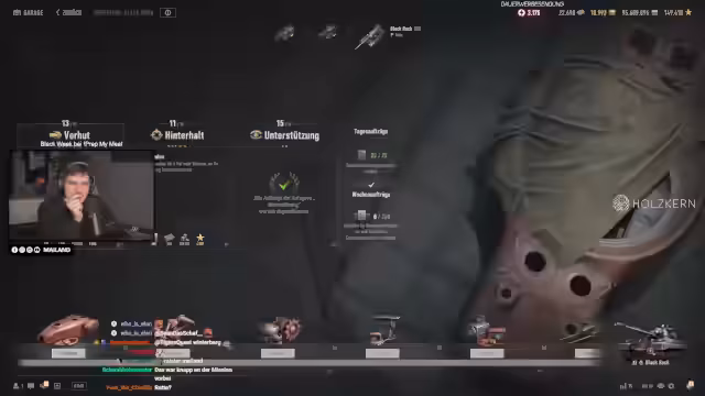 01:29:23Der Streamer kündigt einen weiteren Stream für das Wochenende an, entweder am Samstag oder Sonntag, um die lange Pause auszugleichen. Die Zuschauer werden über die aktuellen Fortschritte bei den Blackrock-Missionen informiert, wobei noch 5 bis 10 Missionen ausstehen. Das Light-Gameplay wird als sehr unterhaltsam und die aktuellen Karten als vorteilhaft für Light-Panzer beschrieben. Es kommt zu einer Diskussion über die Effektivität von Teamstrategien, insbesondere die Tendenz von TDs, sich in Ecken zu verstecken, was die Schussmöglichkeiten einschränkt. Eine bemerkenswerte Spielrunde endet mit einem Ace-Tanker-Ergebnis, entgegen den Erwartungen des Streamers, was auf eine starke Teamverteidigung und gutes Scouting zurückgeführt wird. Trotz eines Teammitglieds mit geringem Schaden wird das Ergebnis als beeindruckend gefeiert und die Möglichkeit, weitere Missionen abzuschließen, optimistisch betrachtet.