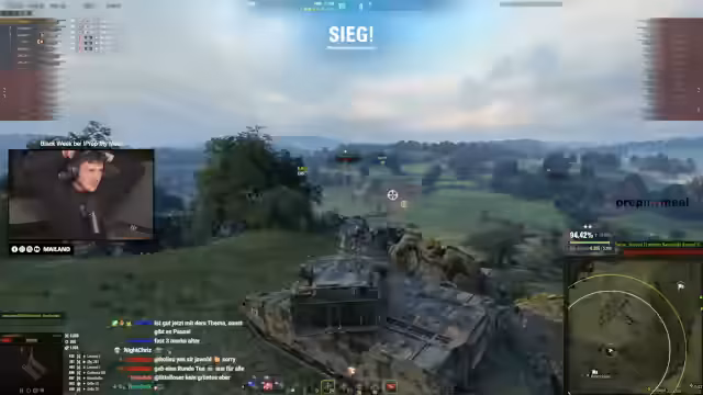01:03:08Der Streamer beschließt, eine letzte Runde im Ausgleich-Modus zu spielen, bevor er zu den regulären Random-Gefechten wechselt. Er bittet den Chat um 'geheime Tipps' für Panzer in diesem Modus und probiert den Hetzer aus, der sich als überraschend effektiv erweist. Während des Spiels kommt es zu einer bemerkenswerten Spende von 100 Euro von 'Tinyline', die er humorvoll mit dem Papierflieger und seiner Frisur in Verbindung bringt. Er bedankt sich überschwänglich für die Unterstützung. Nach dieser letzten Runde im Ausgleich-Modus, die er als 'hirnloses Gejodel' bezeichnet, entscheidet er, dass es Zeit ist, zu den Random-Gefechten zurückzukehren, um seine 'Gehirnzellen' nicht weiter absterben zu lassen und ein Spiel mit mehr 'System' zu spielen. Er wählt einen E-77 für die nächsten Runden, um eine Heavy-Mission zu erfüllen.