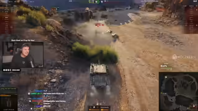 01:08:04Der Streamer wechselt zu den Random-Gefechten und wählt den E-77, um eine spezifische Heavy-Mission zu grinden, bei der er fünfmal so viel Block- und Schadenswerte wie HP erzielen muss. Er diskutiert mit dem Chat, welche Panzer sich am besten für diese Mission eignen, wobei der XM und andere TDs wie der Turtle oder TS-5 als gute Optionen genannt werden. Er reflektiert über seine kürzliche schwere Krankheit, die ihn die letzten zwei Wochen außer Gefecht gesetzt hatte, und bedankt sich erneut für die zahlreichen Sub-Gifts und den Support der Community, insbesondere von 'Anonymous' und 'Mr. Cupcake Chief'. Trotz der technischen Probleme mit der Anzeige der Subs fühlt er sich von der Unterstützung überwältigt. Er konzentriert sich auf das Gameplay und versucht, die Mission mit dem E-77 zu erfüllen, während er weiterhin mit dem Chat über Strategien und Spielmechaniken interagiert.
