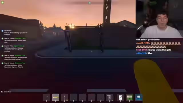 05:07:06Nachdem die Zutaten für die teuerste Meth-Variante, 'Horst Siemen', bereitstehen, beginnt die aufwendige Kochprozess. Parallel plant der Streamer, eine Waffe zu beschaffen, um sein Geschäft zu schützen. Nachdem er einen Waffendealer aufsucht und erwirbt, tötet diesen versehentlich durch einen Schuss, was ihn in einen Kampf mit der Polizei zieht. Er flieht mit seinem Van und muss feststellen, dass die gesamte Stadt nach ihm sucht, was zu einer dramatisischen Flucht und dem Entschluss führt, den Stream für den Tag zu beenden.