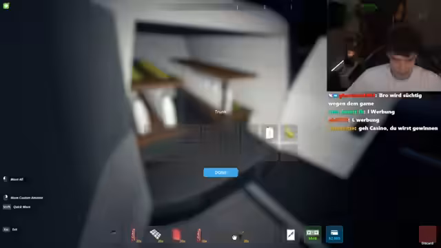 03:52:56Eine Eskalation mit der Polizei zwingt den Streamer, die Flucht zu ergreifen. Die Verfolgungsjagd führt zu finanziellen Verlusten und der Notwendigkeit, Geld zu waschen. Um den drohenden Ruin abzuwenden, wird eine riskante Methode zur Geldbeschaffung im Casino in Betracht gezogen, während gleichzeitig ein Auto gekauft und der Lagerraum optimiert werden muss, um den geschäftlichen Betrieb aufrechtzuerhalten.