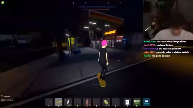 05:20:57Während die Meth mit der Zutat 'Horst Siemen' kocht, nutzt der Streamer die Zeit, um sich eine Knarre zu besorgen. Nachdem er die Waffe erworben und Munition geladen hat, testet er sie, indem er auf einen Dealer zielt. Der Schuss geht fehl, und der Dealer zieht ein Messer, was den Streamer dazu zwingt, zu fliehen. Er realisiert, dass er ohne Munition ist und sein Revolver unbrauchbar wurde, was seine Position als 'Mafia-Boss' massiv schwächt.