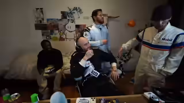 02:53:43Nach mehreren Rennen und einem Rückstand im Turnier wird die Stimmung im Team angespannt. Der Streamer versucht, seine Kameraden zu motivieren, indem er verspricht, "alles zu geben" und droht sogar, bei schlechter Leistung Eli auf den Mund zu küssen. Er macht sich Sorgen über das langsame Verbindungsproblem eines Teamkollegen, das die Performance beeinträchtigt. Trotz intensiver Bemühungen und guter Einzelleistungen kann das Team dieses Rennen nicht für sich entscheiden, was zu einem Rückstand von 0-2 im Turnier führt und die mentale Belastung erhöht.