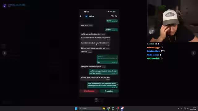 01:59:32Ein Chat wird vorgelesen, in dem jemand nach einem Treffen fragt und eine Überraschung ankündigt. Daraufhin meldet sich die andere Person mit 'Bin gespannt. Wäre ich an deiner Stelle auch?' und der Streamer interpretiert dies als steilvorlage für einen Treffen, die aber nicht genutzt wird. Ein anderer Chat zeigt jemanden, der nach über 24 Stunden Stille emotional wird und sich fragt, was er falsch gemacht habe.