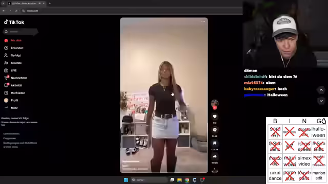 02:14:49Es beginnt die intensive Suche nach passenden Videos für das TikTok-Bingo. Der Streamer und sein Chat durchforsten die For-You-Page nach aktuellen Trends wie 'Maui Waui', 'Sahide', 'Sophie Rain' und 'Tiramisu'. Die Schwierigkeit besteht darin, die nötigen Themen wie 'Rakai Dance' oder 'Halloween' zu finden, während die Zeit ständig abläuft.