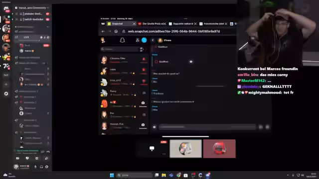 01:58:29Marlon stellt einen Kontakt von Snapchat vor, den er als 'ein bisschen trash' einschätzt. Es wird eine Bildschirmübertragung gestartet, aber es gibt technische Schwierigkeiten, da die Person im Chat Screen-Recordings bemerkt und daraufhin bittet, dies zu unterlassen. Marlon erklärt, dass er die Person über Snapchat kennengelernt hat und es bisher noch zu keinem Treffen gekommen ist. Der Stream wird kurz unterbrochen, und es wird besprochen, dass es ideal wäre, jemanden zu finden, mit dem bereits eine längere Konversation besteht, um ein echtes Date zu arrangieren. Nach der Rückkehr in den Stream wird das Alter des Kontakts (17) festgestellt, und es wird versucht, ein Gespräch zu initiieren, indem gefragt wird, was die Person gerade macht. Aufgrund der verzögerten Antwort wird Marlon vorerst stummgeschaltet, um später wieder in den Stream zurückzukehren, sobald eine Antwort eintrifft. Die Moderatoren werden gebeten, den Chat im Auge zu behalten.