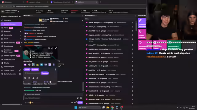 00:03:47Der Stream startet mit technischen Problemen beim Bild. Der Streamer begrüßt den Chat und erzählt, dass der Stream vom Vortag ausgefallen ist, da der vorbereitete Fake-Account für einen Loyalitätstest zu unrealistisch wirkte. Er verspricht, den Test und ein Lügendetektor-Format mit seiner Freundin für Sonntag nachzuholen. Zudem wird eine Reaktion auf eingereichte Glow-Ups für den nächsten Tag angekündigt.
