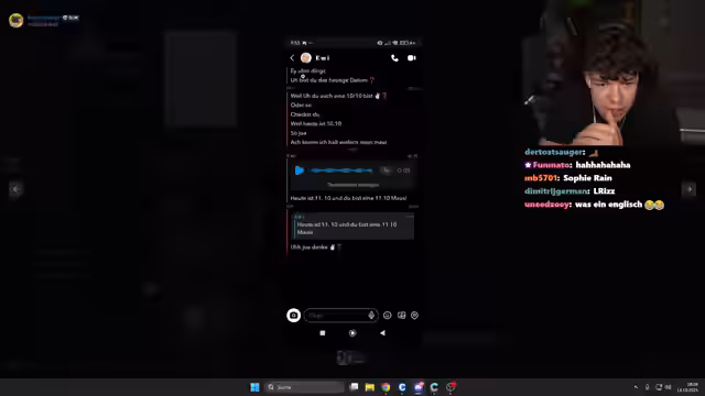 02:11:22Der Streamer unterbricht, da er die Kommentare lesen möchte. Er kommentiert, dass das Thema Respekt wichtig ist und stellt die Frage, warum Frauen Prioritäten haben dürfen. Kurz darauf geht er aufgrund des Eintreffens seiner Freundin vom Bild. Es ist geplant, deren TikTok-Likes zu prüfen und danach eine Eye-Tracker-Challenge sowie ein FIFA-Spiel durchzuführen.
